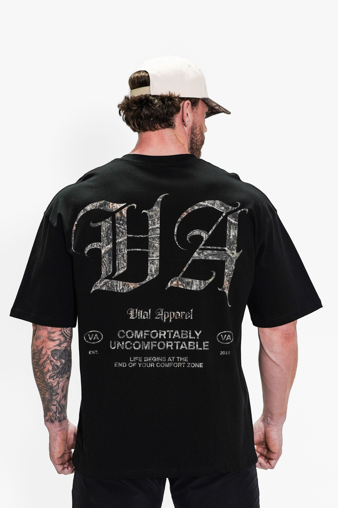 Oversized Pump Cover T-Shirt - Black/Woodland VA - VITAL APPAREL